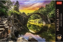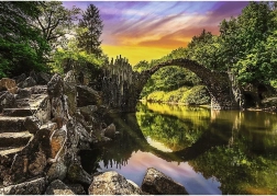 Ponořte se do atmosféry zapadajícího slunce nad legendárním Rakotzbrücke. Toto detailní puzzle z kolekce Photo Odyssey přináší ostrý tisk, syté barvy a realistickou kresbu, která dělá ze skládání vizuálně poutavý zážitek. Rozměr složeného obrázku je přibližně 68,3 × 48 cm – ideální pro zarámování.