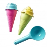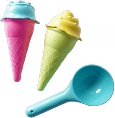 Proměňte pískoviště v zmrzlinárnu! Tato roztomilá sada obsahuje kornoutek, kopeček a servírovací lžíci, díky nimž děti snadno vytvářejí písčité kopečky a celé „poháry“. Jednoduché použití podporuje samostatnost a fantazii při hře.