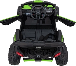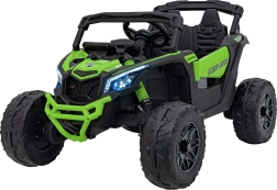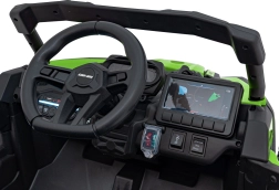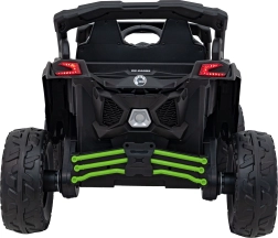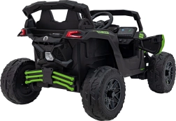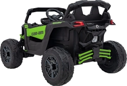 Dětské elektrické vozítko CAN-AM Maverick v zelené barvě nabízí realistický zážitek z jízdy pro děti. Disponuje silným motorem, robustními koly a funkčními LED světly pro bezpečnou a zábavnou jízdu.