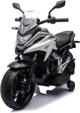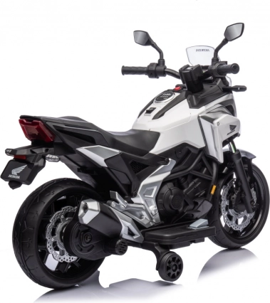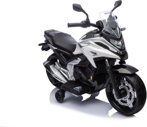 Elektrická motorka Honda NC750X je perfektní volbou pro děti, které milují moderní design a realistické detaily. Díky dvěma motorům 2x35 W a baterii 12 V poskytuje plynulou a jistou jízdu. Pomalý start chrání dítě před cuknutím při rozjezdu a pomocná kolečka zajišťují stabilitu začátečníkům.