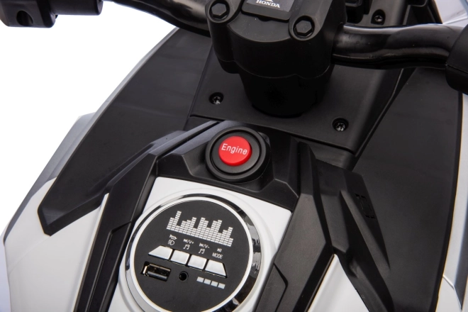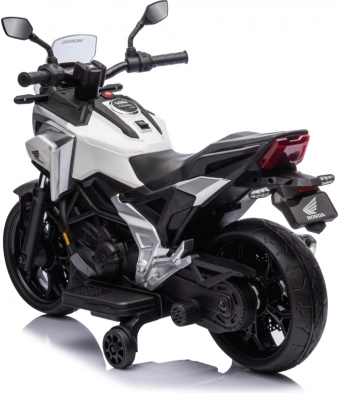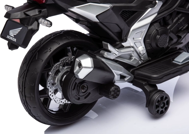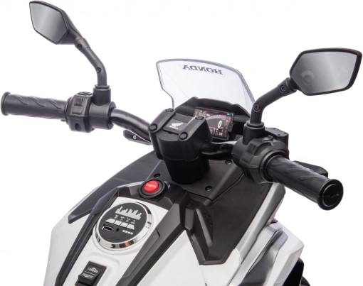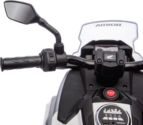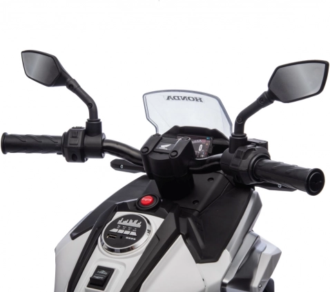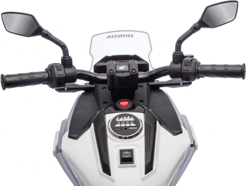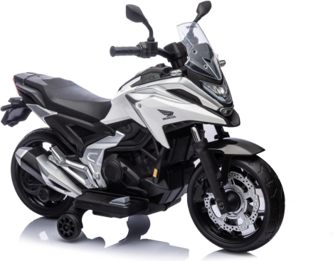 Stylová dětská elektrická motorka licencovaná značkou HONDA přináší realistický zážitek z jízdy pro malé motorkáře. Výkonný pohon 2x35 W, baterie 12 V 4,5 Ah, gumový běhoun kol pro lepší přilnavost, LED přední světla a bohatá multimédia (MP3/AUX/USB/Bluetooth) zaručí spoustu zábavy i bezpečí díky pomalému rozjezdu a pomocným kolečkům.