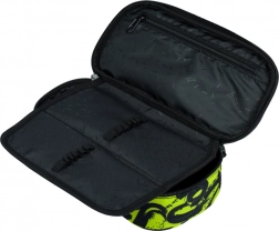 Vnitřek penálu zahrnuje pružné smyčky a více přihrádek pro efektivní organizaci. Včetně kapsy na zip a kapsy na rozvrh, každá položka má své místo.