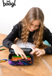 Tento pevný školní penál je ideálním pomocníkem pro každého školáka. Díky své výklopné vnitřní přepážce nabízí snadný přístup ke všem školním potřebám.