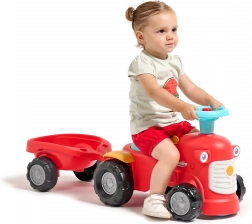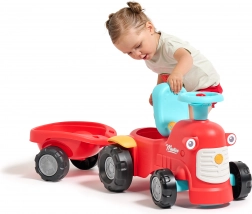 Zábavné a stabilní odrážedlo ve stylu traktoru s přívěsem potěší malé řidiče od 12 měsíců. Nabízí bezpečnou jízdu, odolná plastová kolečka, otočnou přední nápravu pro snadné ovládání a houkačku pro ještě více zábavy. Praktický úložný prostor pod sedadlem a odnímatelný přívěs rozvíjejí fantazii i motoriku dětí.