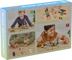 Objevte svět stavění s inovativní stavebnicí Plus-Plus Lidé ze světa! Tato sada nabízí 275 barevných dílků, s nimiž mohou děti vytvářet pestré postavy a ilustrovat rozmanitost naší planety. Díky přiloženým dvěma malým základním deskám je možné stavby snadněji umístit a prezentovat.