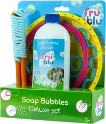 Deluxe sada na bubliny FRU BLU s roztokem 0,4 l přináší kompaktní, snadno skladovatelné řešení pro tvorbu malých i obřích bublin. Díky snadnému složení, 3 vyměnitelným nástavcům a přiloženému roztoku 0,4 l si děti i dospělí užijí maximální venkovní zábavu na oslavách i každý den.