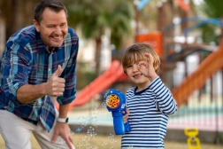 Pohodlné držení, jednoduché ovládání a nádoba na roztok proti rozlití usnadní hraní dětem i rodičům.