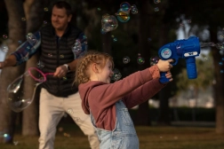 Připravte se na barevnou show s bublinovým střelcem Fru Blu. Stačí naplnit nádobku roztokem, stisknout spoušť a sledovat, jak se kolem vás vyrojí záplava třpytivých bublinek. LED světlo zvýrazní jejich barvy, takže si děti užijí bubliny i za šera.