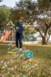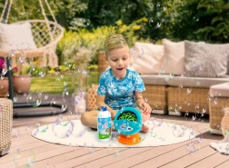 Lehká konstrukce a intuitivní zapnutí umožní, aby se do hry zapojily i menší děti – stačí nalít roztok a spustit.