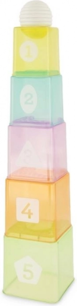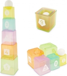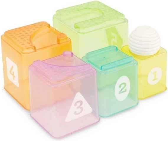 Sada Infantino stohovacích kelímků s míčkem je ideální pro první objevování tvarů, barev a čísel. Průhledné kelímky s čitelnými čísly lze skládat od nejmenšího po největší a stavět stabilní věže, což rozvíjí jemnou motoriku a prostorové vnímání.
