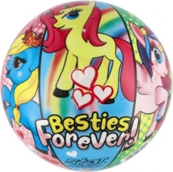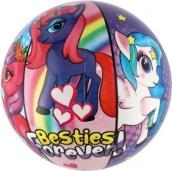 Míč je zdoben barevnými obrázky poníků, které přitahují pozornost a přináší radost z každé hry.