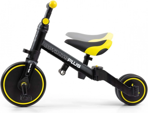 OPTIMUS PLUS je promyšlené řešení pro první krůčky do světa jízdy. Díky tříkolové stabilitě a omezovači rejdu se dítě učí jistotě a správným návykům. Jakmile pokročí, snadno přidáte pedály nebo přestavíte na odrážedlo pro trénink rovnováhy.