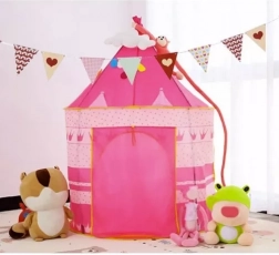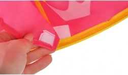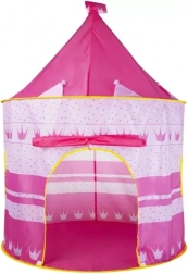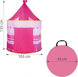 Růžový motiv s korunkami, dvě síťovaná okénka a vstup na suchý zip vytvářejí útulné a větrané místo na hraní. Prostor pojme i více dětí najednou.