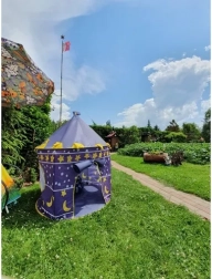 Kouzelný dětský stan ve tvaru hradu promění každý pokoj i zahradu v místo plné fantazie. Díky lehké konstrukci a praktickému pouzdru je snadno přenosný, rychle složený do 5 minut a vhodný pro hraní doma i venku. Odolný polyester, stabilní rám z PA a skelných vláken, síťovaná okénka a dveře na suchý zip zajistí bezpečné a pohodlné prostředí pro děti.