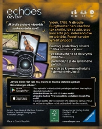 Echoes: Housle vás přenese do Vídně roku 1788, kde po velkolepém koncertě zůstávají dvě mrtvá těla a řada nezodpovězených otázek. Vaším úkolem je naslouchat audionápovědám, propojovat indicie a seřadit události ve správném pořadí. Díky jedinečné kombinaci zvukových stop a fyzických karet zažijete detektivní pátrání jako nikdy předtím.