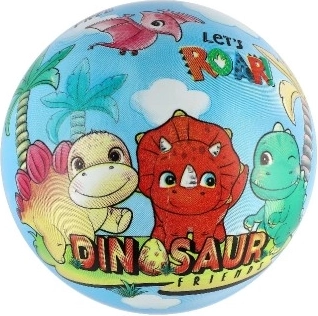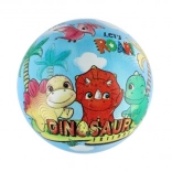 Pestrobarevné ilustrace dinosaurů dělají z míče atraktivní hračku, která děti láká k pohybu a společné hře.