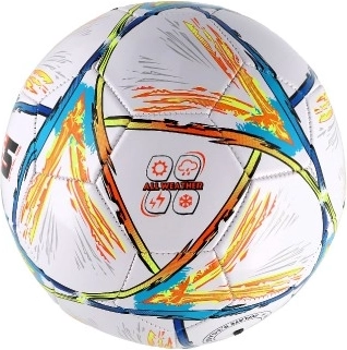 Spolehlivý a odolný barevný fotbalový míč pro rekreační i tréninkové použití. Díky velikosti 5 a průměru 23 cm se skvěle hodí pro dospělé i starší děti. Šité zpracování a kožený povrch přinášejí příjemný dotyk, stabilní let a lepší kontrolu míče.