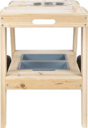 Dvě vyjímatelné misky a nerezový dřez zvou k míchání, nabírání a „vaření“. Ideální alternativa k pískovišti pro rozvoj smyslů a fantazie.