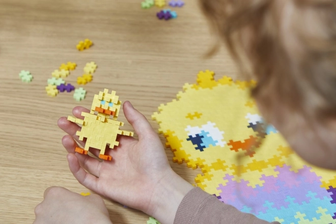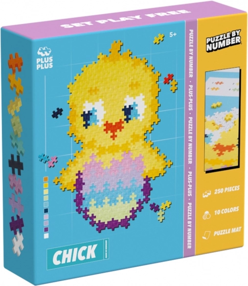 Stavebnice Plus-Plus Skládej podle čísel – Kuřátko nabízí chytrou zábavu pro děti od 5 let. Díky 250 dílkům a předloze podle čísel děti snadno poskládají roztomilé kuřátko ve skořápce, samostatné 3D kuřátko i 2D vajíčko. Jednoduchý princip zacvakávání dílků rozvíjí představivost a podporuje soustředění.