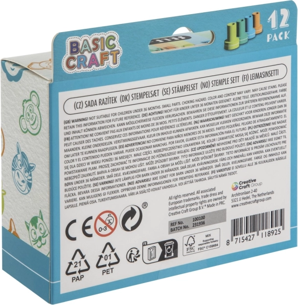 Veselá razítka Basic Craft přinášejí nekonečné možnosti tvoření pro malé děti. Díky samobarvícímu designu není potřeba žádné další inkoustové podložky, což zaručuje jednoduché a čisté používání. Perfektní pro kreativní aktivity i vzdělávací činnosti.