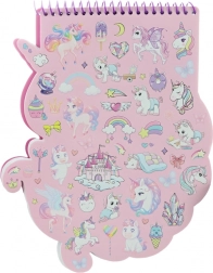 Vyřezávané desky ve tvaru dinosaura nebo jednorožce a horní spirála zajišťují pohodlné otáčení stránek a zábavný vzhled.