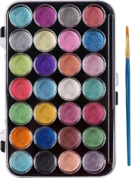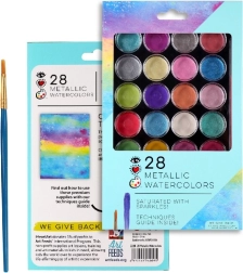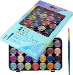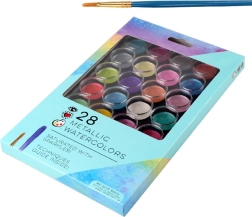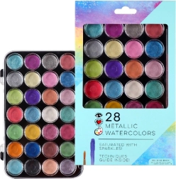 Tento univerzální set akvarelových barev s metalickým efektem je skvělou volbou pro školní projekty, ilustrace i kreativní relax. Díky bohaté paletě 28 třpytivých odstínů snadno vytvoříte výrazné detaily i jemné přechody.