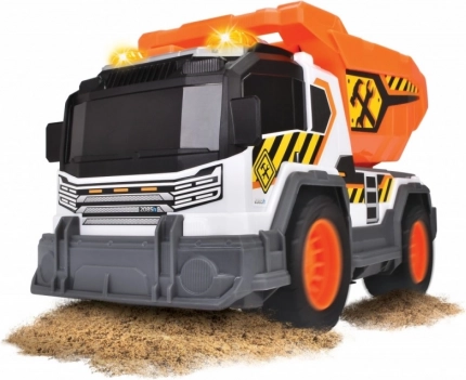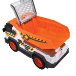 Sklápěčka bez pohonu, se světelnou a zvukovou funkcí. Vybaven sítkem a lopatkou na písek. Ruční zvedání sklápěče. Funkce Try Me, baterie jsou součástí balení. Délka 30 cm, věk +3 l.