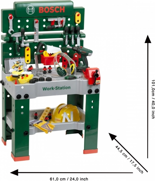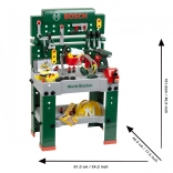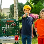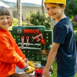 Dětský pracovní stůl BOSCH je kvalitní a bohatě vybavené pracoviště pro malé kutily. Nabízí realistické funkce, jako je svěrák, pegboard se závěsnými háčky, úložné boxy a pracovní desku s měřítkem. Sada obsahuje širokou škálu nářadí a příslušenství včetně dětského akumulátorového šroubováku se světelnými a zvukovými efekty.