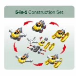 Děti se zábavnou formou učí zacházet se šrouby, matkami a stavebními díly různých tvarů, cvičí koordinaci oko–ruka a rozvíjejí představivost při rolových hrách. O bezpečné a uvědomělé hraní se stará ochranná helma, brýle, chrániče sluchu a rukavice. Skvělou výzvou je také vozidlo k vlastnímu sestavení, které lze na pracovním stole opakovaně skládat a rozkládat.