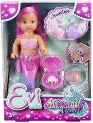 Panenka Evi jako perlová mořská víla okouzlí děti svým fialovým rybím ocasem a dlouhými růžovými vlasy, které lze upravovat pomocí přiložených sponek ve tvaru obláčku, duhy a jednorožce. Součástí je také magická perla, kterou lze vložit do dětského prstýnku a proměnit ji v kouzelný šperk.