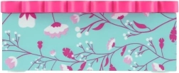Tyrkysové tělo s květinami a růžové víko vytváří hravý, ale vkusný doplněk do dětského pokoje i ložnice.