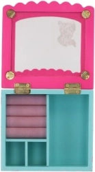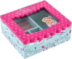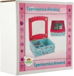 Uvnitř najdete prakticky členěné přihrádky, které udrží šperky oddělené a chráněné. Díky pevnému dřevěnému provedení a spolehlivým pantūm je šperkovnice nejen hezká, ale i odolná pro každodenní používání. Nápaditý design se hodí jako dárkové balení i jako dekorace do dětského pokoje.