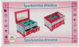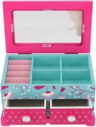 Horní část se zrcátkem a rozdělenými přihrádkami plus dvě prostorné zásuvky udrží šperky a drobnosti přehledně na svém místě.