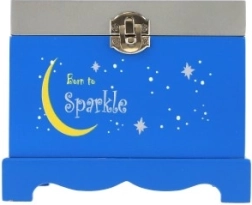 Design s nápisem „Born to Sparkle“, hvězdičkami a měsíčkem působí hravě a dekorativně. Díky kompaktním rozměrům se šperkovnice vejde na komodu i poličku a stane se krásnou dekorací dětského pokoje.