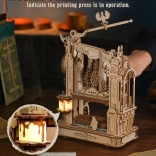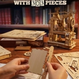 Postavte si vlastní miniaturu historické tiskárny a objevte kouzlo mechaniky. Toto precizní dřevěné 3D puzzle s mechanickými převody, světelným efektem a pohyblivým tiskem nabízí zábavu i dekorativní hodnotu. Díky samonamáčecímu mechanismu, přizpůsobitelné tiskové desce a více než 100 typografickým prvkům si vytisknete vlastní motivy pro scrapbooking, vizitky i pohlednice. Bez lepidla, z laserem předřezané lipové překližky.