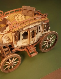 Vraťte se do éry koňských povozů s elegantní hrací skříňkou ve tvaru dostavníku, kterou si sami sestavíte. Model z přírodního dřeva nabízí mechanický pohyb po natažení pružiny, otáčecí přední kola a okouzlující melodii. Díky 199 precizně vyřezávaným dílkům a střední obtížnosti je ideální jako dárek i dekorace pro milovníky retro stylu a chytrého relaxu.