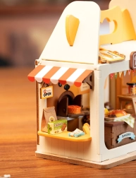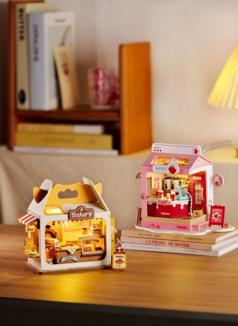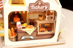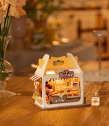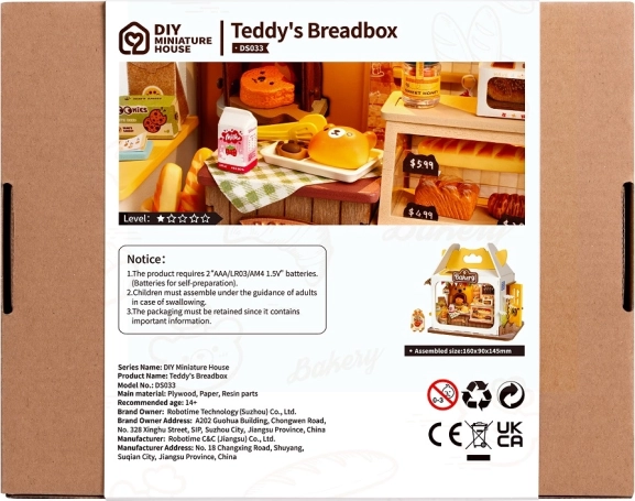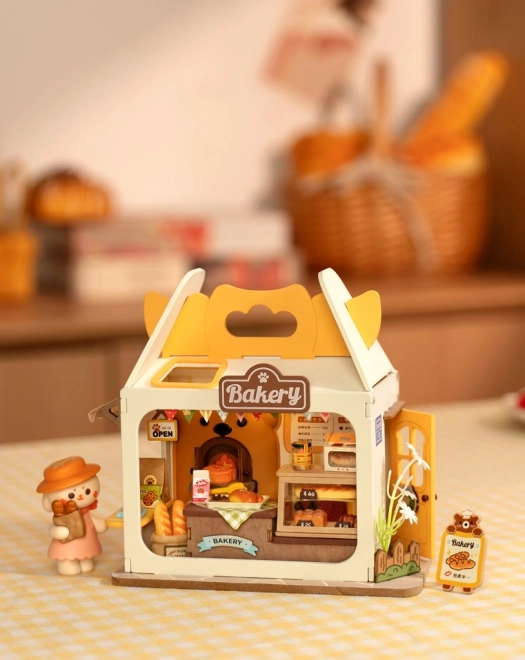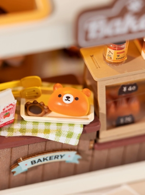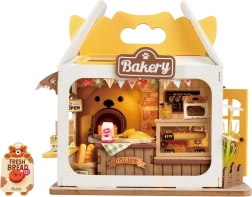 Medvídkovo pekařství je půvabná miniatura pro všechny, kdo milují tvoření a design. Stavebnice obsahuje vše potřebné k sestavení včetně lepidla a nástrojů, stačí přidat nůžky. Po zapnutí LED osvětlení se pekárna promění v teplé, útulné světélko, které zvýrazní každý detail vitrín, cedulek a pečiva.