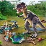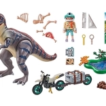 S herní soupravou PLAYMOBIL Hon na T-Rexe se děti přenesou do světa dinosaurů. Badatelka na motorce s postranním vozíkem se vydává na výpravu za stopami T-Rexe. Po cestě nachází kosterní pozůstatky a obrovský otisk nohy. Střet s gigantickým T-Rexem je nevyhnutelný. Tato souprava podporuje dětskou představivost a roli hraní díky svým detailům a pohyblivým částem.