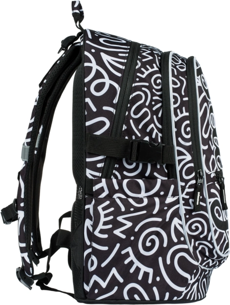 Boční kapsy jsou ideální na láhev s vodou či další drobnosti. Batoh je lehký (pouze 900 g) a má objem 25 litrů s nosností až 7 kg, což je ideální pro školní potřeby.