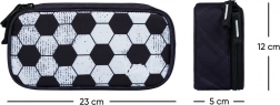Stylový školní penál BAAGL Goal s motivem fotbalového míče nabízí pevnou konstrukci, praktickou výklopnou přepážku, vnitřní kapsu na zip a kapsu na rozvrh. Vyroben z recyklovaného materiálu a osazen kvalitními zipy YKK. Bez náplně – připravený na vaše oblíbené psací potřeby.