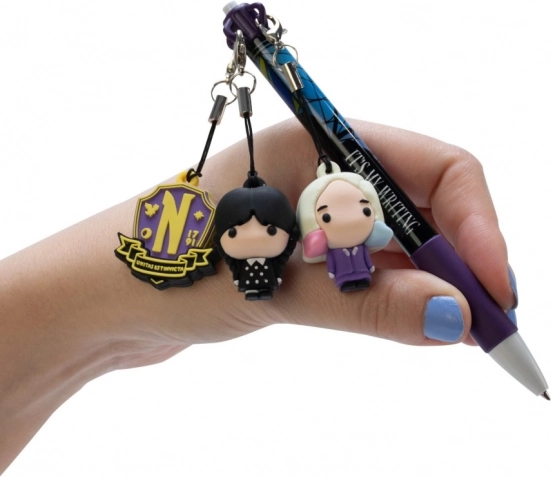Toto pero přináší sběratelskou hodnotu s motivem postavy Wednesday a přívěsky, které z něj dělají fascinující sběratelský kousek.