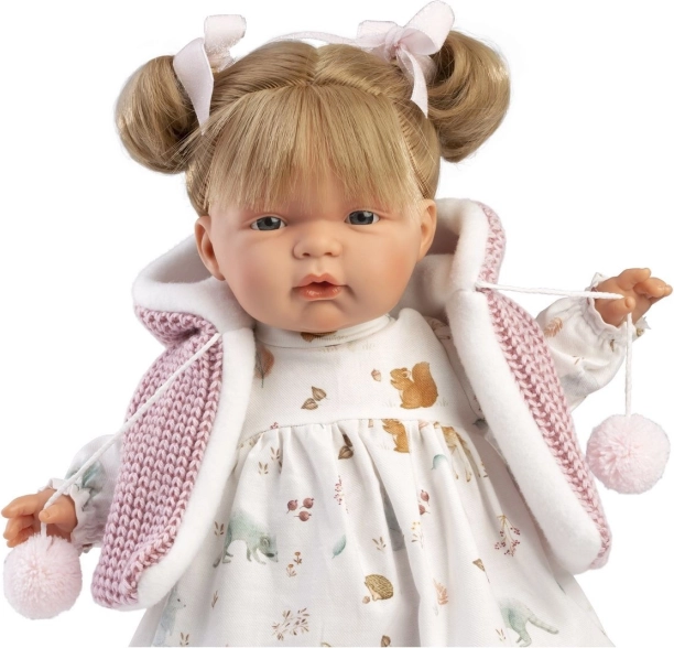 Panenka Joelle od značky Llorens je ztělesněním pečlivé ruční práce. Jemně zvýrazněné rysy, realistické stínování a nádherné oči s řasami dodávají panence živý výraz. Díky měkkému bříšku se příjemně objímá a je skvělou společnicí pro každodenní hraní.