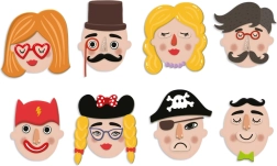 Děti kombinují brýle, vousy, korunky a další doplňky a vytvářejí veselé i legrační výrazy.