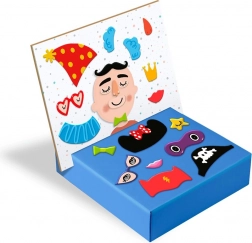 Objevte svět výrazů a fantazie s magnetickou hrou DODO, která dětem umožní skládat vlastní tváře pomocí rozmanitých magnetek – od očí, nosů a úst až po brýle či korunky. Ideální pomůcka pro první seznámení s částmi obličeje i pro rozvoj řeči a popisu emocí.