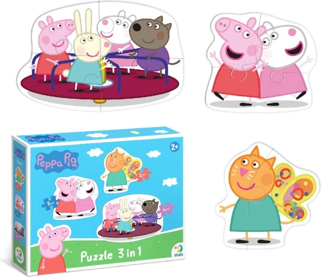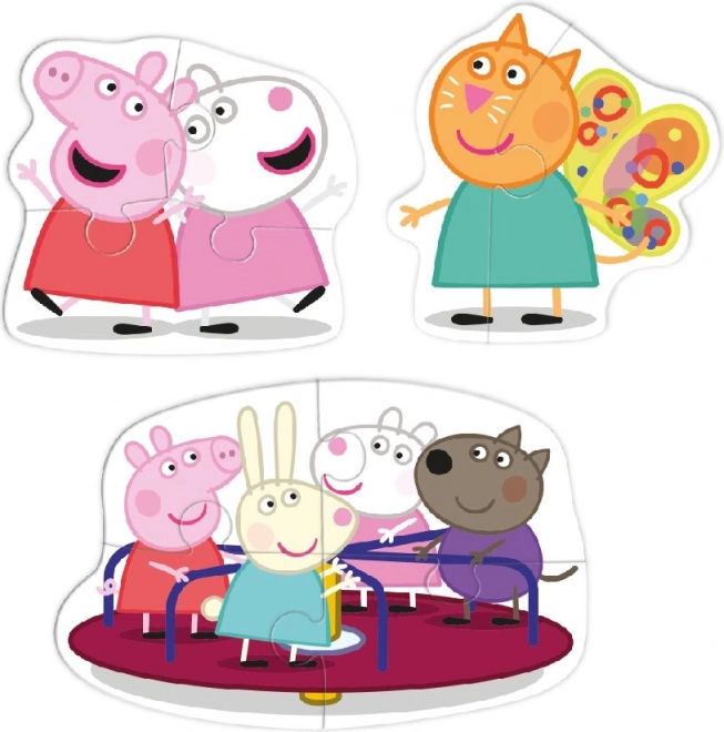 Objevte zábavné dětské puzzle s motivem oblíbeného seriálu Prasátko Peppa. Sada obsahuje 3 obrysové obrázky s různým počtem dílků (2, 3 a 4), které podporují rozvoj představivosti, logického myšlení a jemné motoriky.