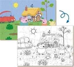 Toto oboustranné puzzle přináší dětem dvojnásobnou porci zábavy. Nejprve složí veselý motiv s postavičkami z oblíbeného seriálu Prasátko Peppa, poté si na rubové straně mohou puzzle po složení vybarvit podle vlastní fantazie.