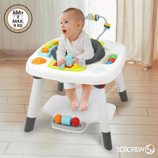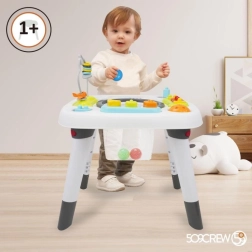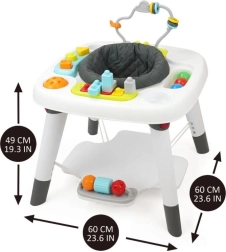 Interaktivní hrací stůl pro děti 3v1 je více než jen hračkou. V první fázi dítě může zkoumat svět kolem sebe z pohodlí sedadla s hračkami, které jsou snadno dosažitelné. Druhá fáze přináší zábavu při učení se chodit a komunikovat s interaktivními a barevnými hračkami uspořádanými okolo stolu. Třetí a poslední fáze přeměňuje stůl na funkční kus nábytku, který může sloužit ke hře, jídlu nebo jiným kreativním aktivitám.
