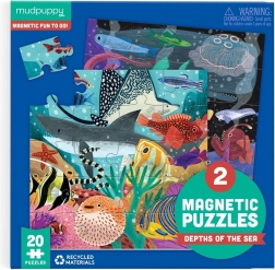 Objevte krásu a rozmanitost podmořského světa s magnetickými puzzle Hlubiny moří od Mudpuppy. Tento balíček obsahuje dvě scény, každou s 20 dílky, které se bezpečně přichytávají díky magnetům, což je činí ideálními i na cesty.