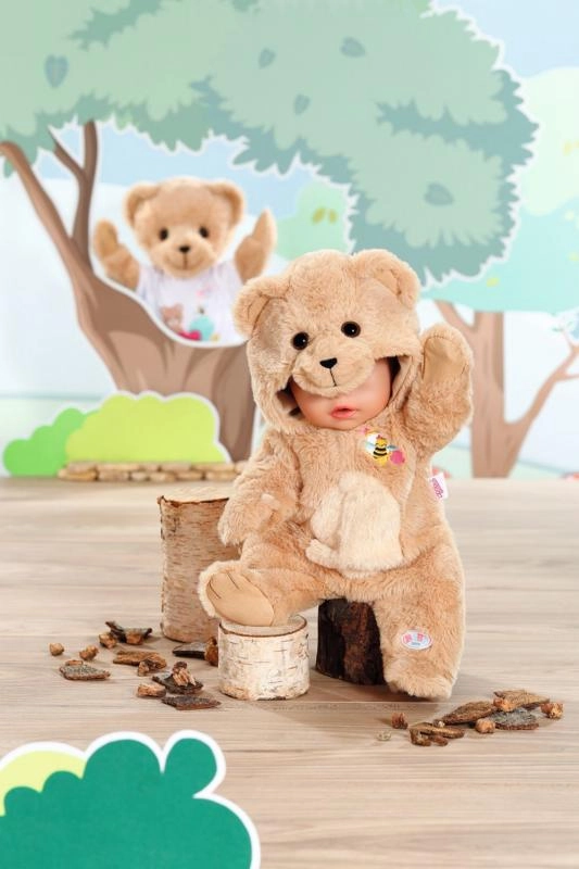 Oblékněte svou panenku do roztomilého medvídkového pyžamka a objevujte svět fantazie. Overal z jemného plyšového materiálu je pohodlný, příjemný na dotek a ideální pro mazlení i hraní na převlékání. Kapuce s oušky a roztomilou výšivkou dodává oblečku neodolatelný vzhled.