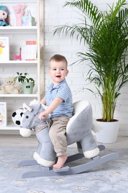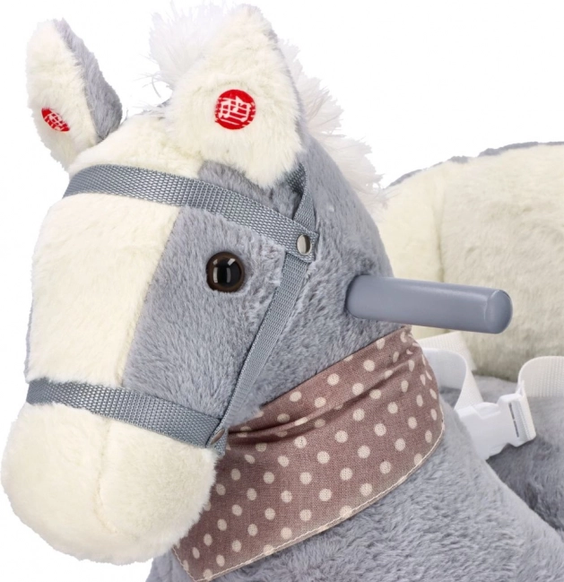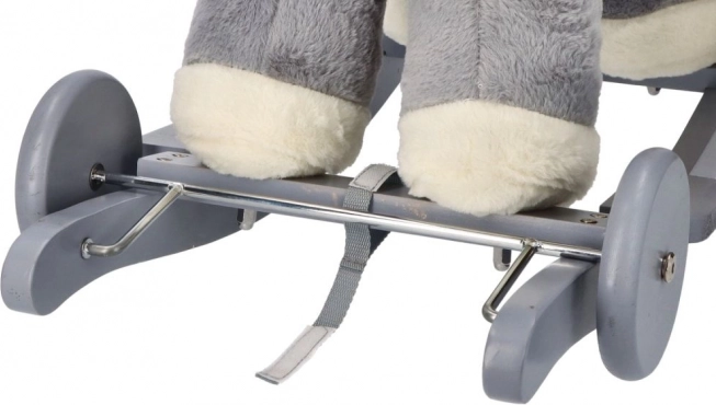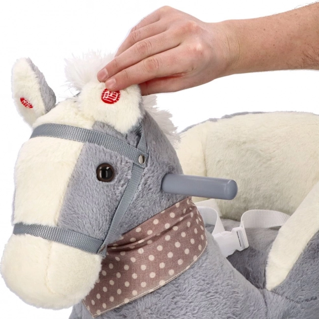 Šedý plyšový koník s komfortním sedátkem je skvělou volbou pro děti, které milují houpání i projížďky. Dřevěné ližiny se zaoblenými hranami a madla zajišťují stabilitu, zatímco měkké polstrování poskytne pohodlí i při delší zábavě. Integrovaná přihrádka na baterie (pod bříškem koníka) umožňuje zapnout zvukové či světelné efekty podle modelu.